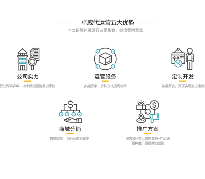 珠海卓威信息咨询有限公司总部位于特区——珠海,服务辐射粤港澳大湾区各大城市,凭借完善的业务体系 和专业化的服务水平,为政企部门、中小企业提供开发、运营、推广一体化解决方案,帮助企业开展移动电商及移动分销等多个层面的业务,实现微信的高效精准营销;为政务部门单位打造具有实时性、具有吸引力、公平公开的官方自媒体宣传渠道,抢占政务宣传高地,协助政务部门更好地服务当地群众。